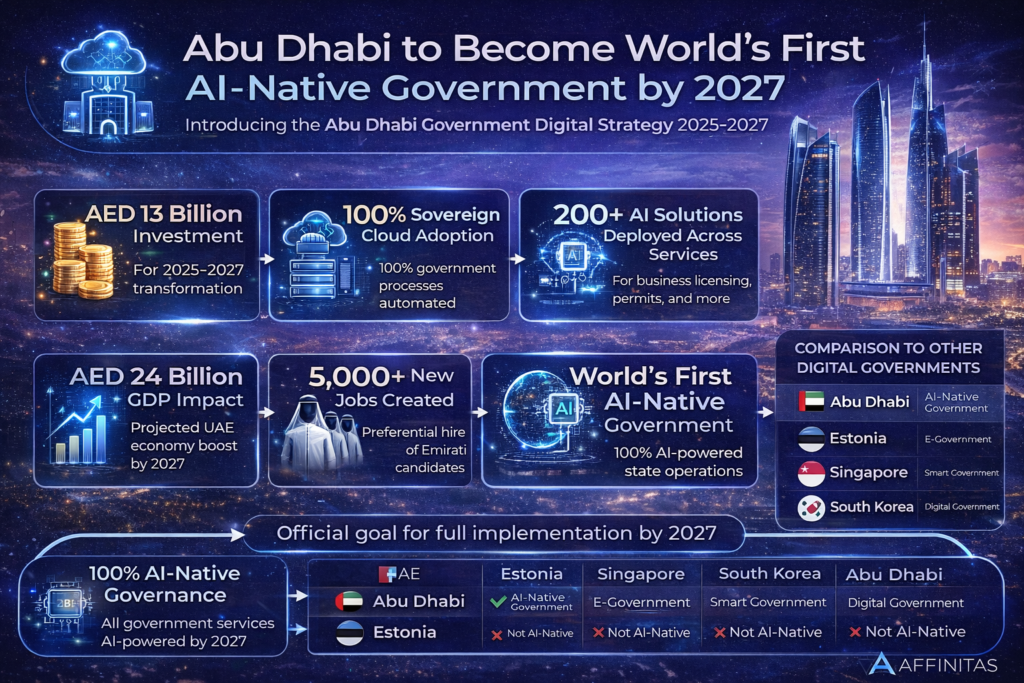 Abu Dhabi has officially announced one of the most ambitious government digital transformations globally. Under the Abu Dhabi Government Digital Strategy 2025–2027, the emirate aims to become the world’s first fully AI-native government, embedding artificial intelligence across all digital public services, infrastructure, and internal operations by 2027.
